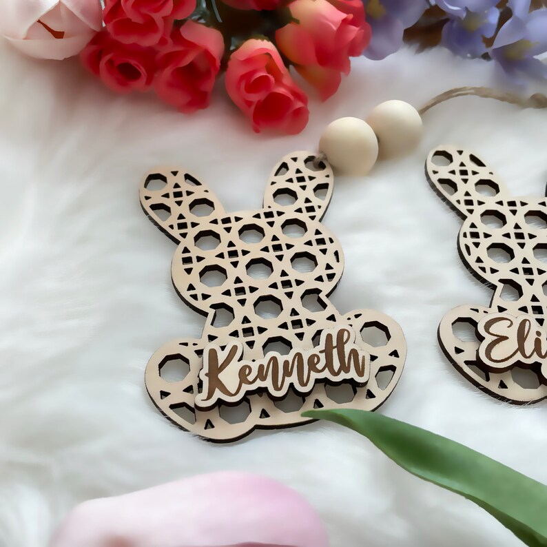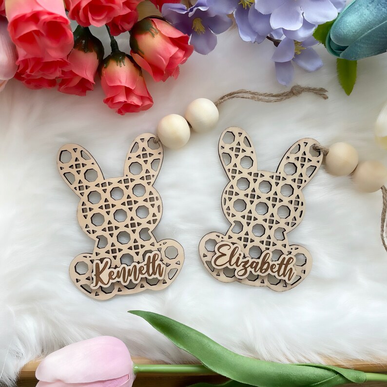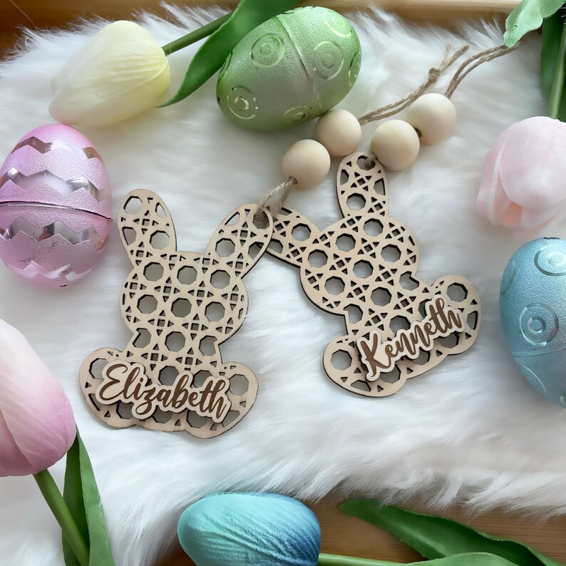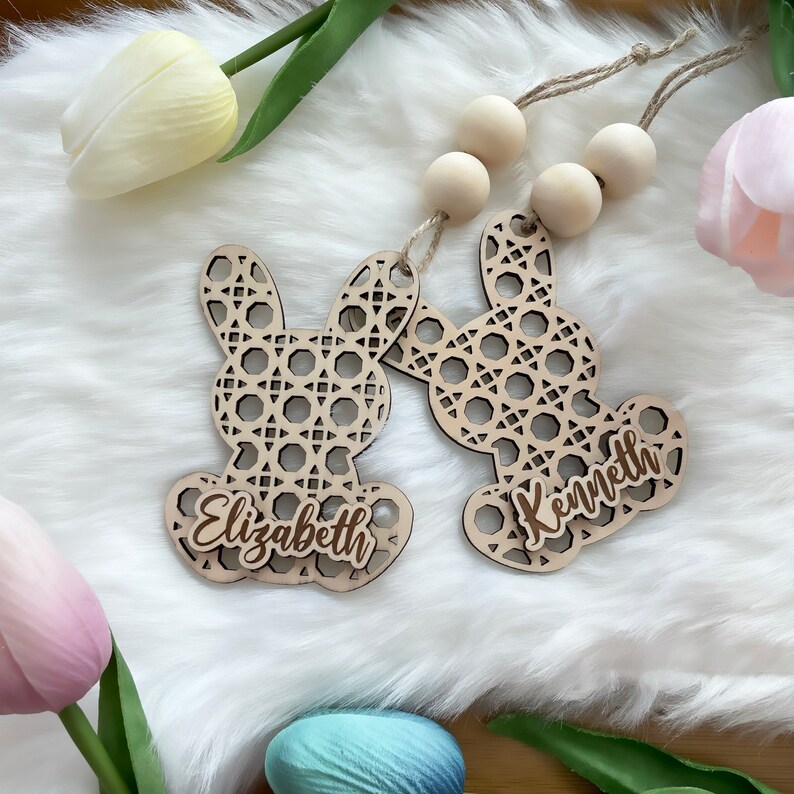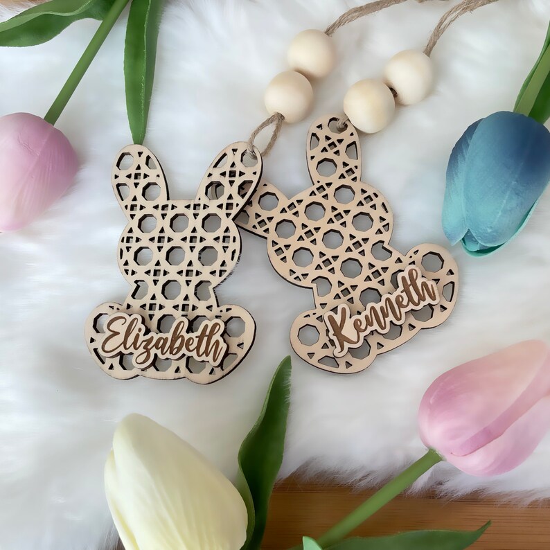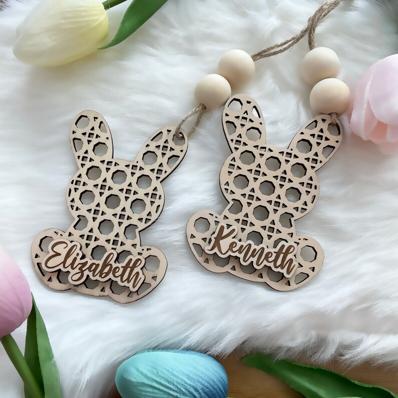 Personalized Easter Bunny Name Tag Rattan Basket Tag Laser Cut Easter Decor Custom Name Bead Tags Personalized Easter Bunny Name Tag Rattan Basket Tag Laser Cut Easter Decor Custom Name Bead Tags