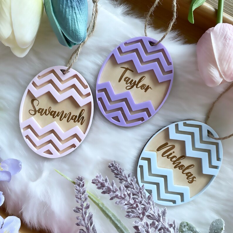 Easter Egg Name Tag, Personalized Easter Bunny Acrylic Tag, Wood Easter Basket Tag, Easter Decor Tag, Acrylic Custom Layered Name Tag Easter Egg Name Tag, Personalized Easter Bunny Acrylic Tag, Wood Easter Basket Tag, Easter Decor Tag, Acrylic Custom Layered Name Tag